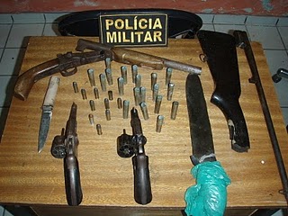 Com o suspeito,a polícia apreendeu um verdadeiro arsenal.2 Revólveres calibre 38.1 Espingarda garrucha calibre 12.1 Espingarda de cartucho, além de cápsulas e munição.Levado a Delegacia de Polícia do município,o cigano disse que as armas eram dele,e que as tinham para defesa pessoal.